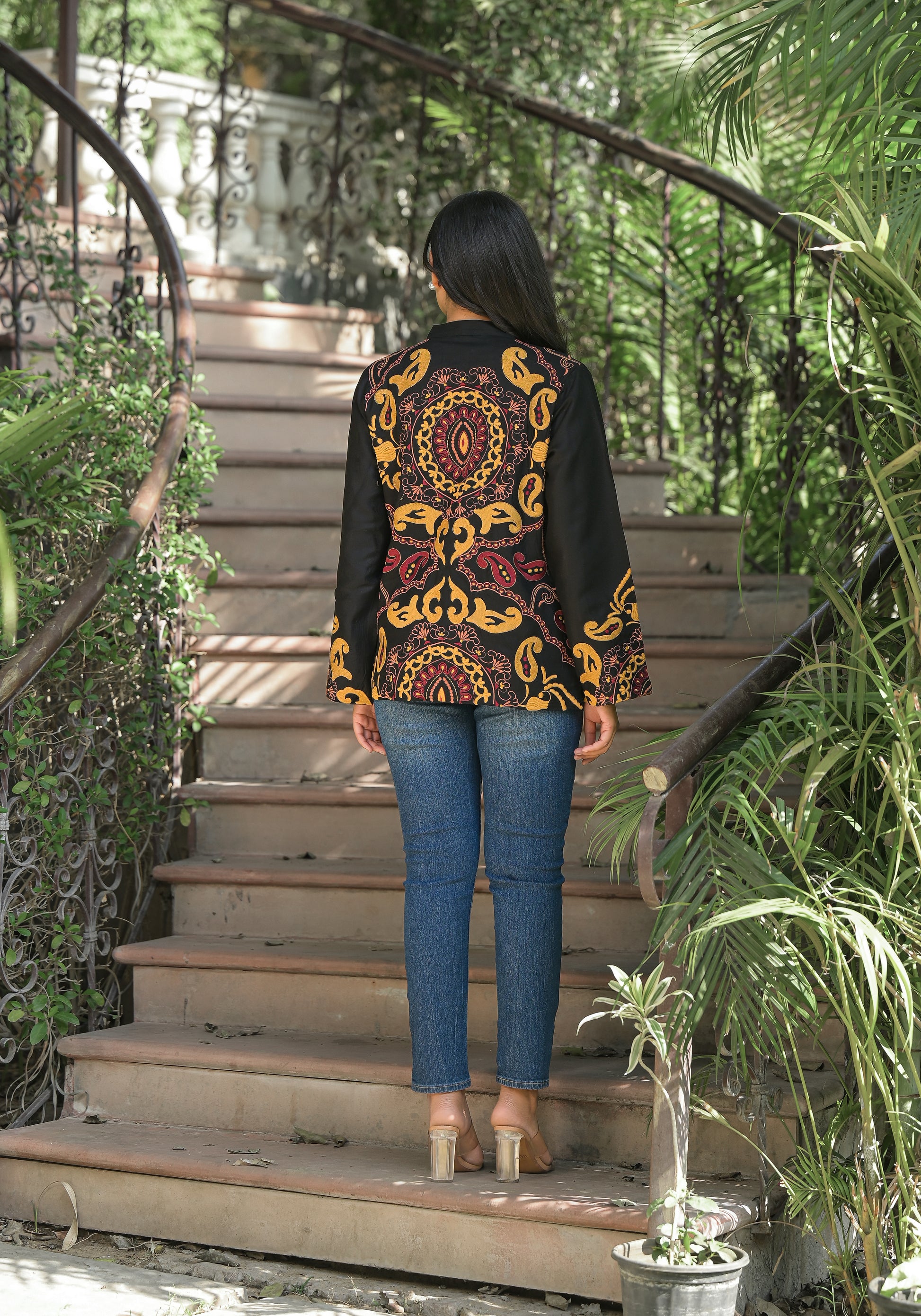 BLACK BOHO STYLE EMBROIDERED JACKET