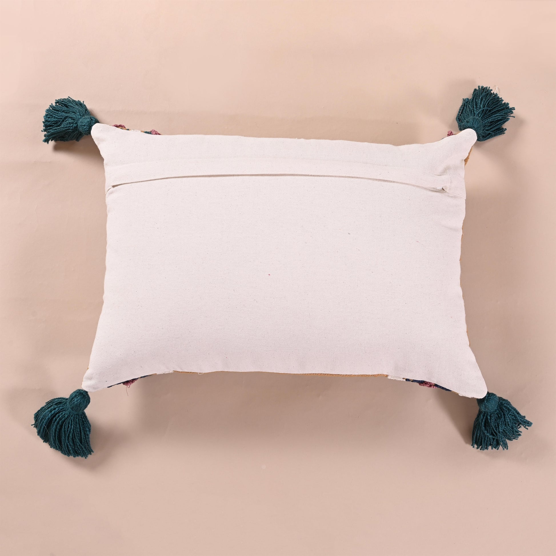 Add a splash of charm to your space with this fine top embroidered cushion cover with deep green tassels.