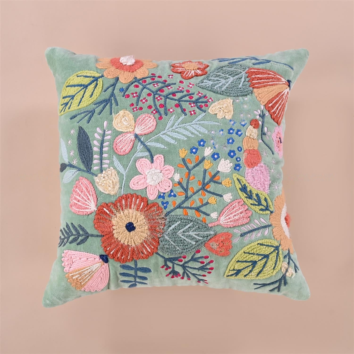Add a splash of charm to your space with this Green Velvet embroidered cushion cover.