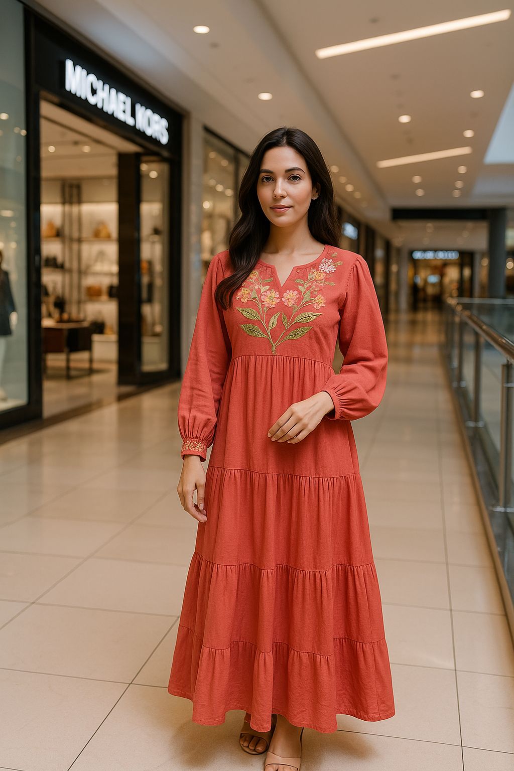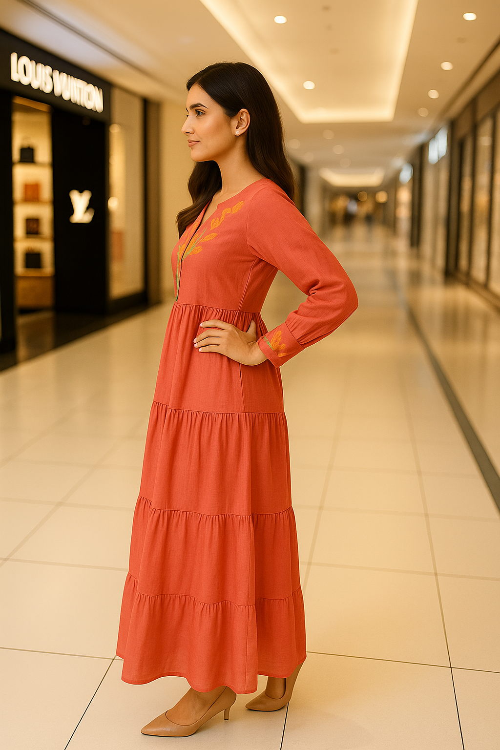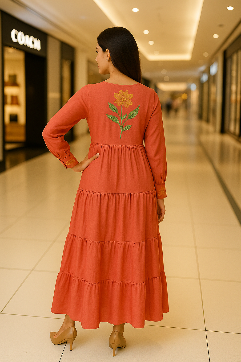 Beautiful Embroidered Tiered Full sleeve Maxi Dress